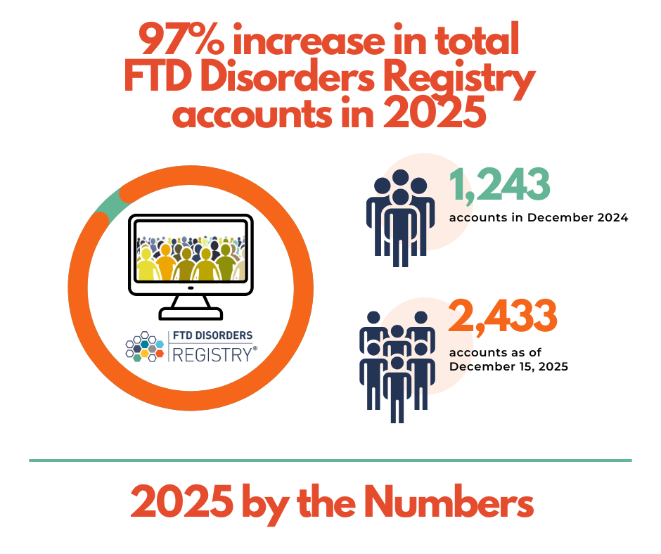 As 2025 comes to a close, we reflect on a year of growth and engagement that underscores the FTD Disorders Registry’s role in advancing research and amplifying the voices of those impacted by FTD.